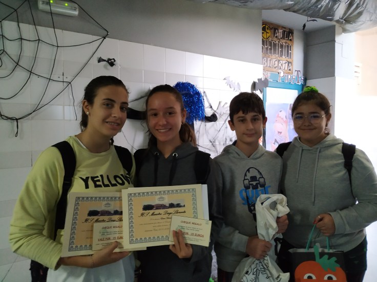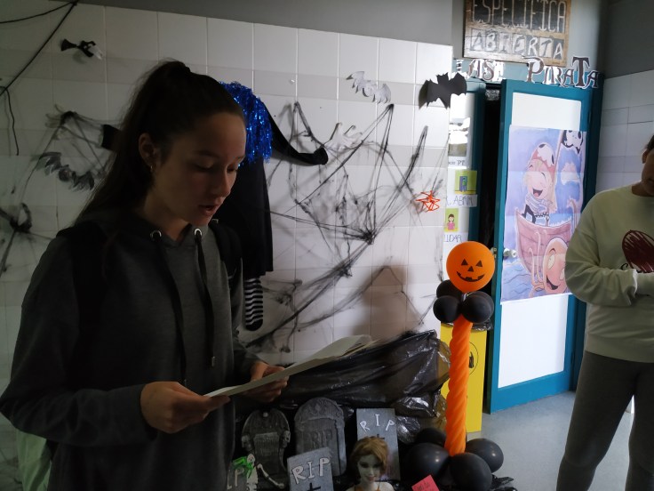 Nuestro centro celebra Halloween con el II Concurso de micro relatos de terror en los tres idiomas: francés, inglés y español, destinado a los alumnos de 3º y 4º de ESO. Las bases de la convocatoria se hicieron públicas previamente por el profesorado y finalmente, el día 30 de octubre se dio a conocer a los/las ganadores/as del mismo y se leyeron los micro relatos. El premió consistió en un vale canjeable por material escolar y el diploma acreditativo.