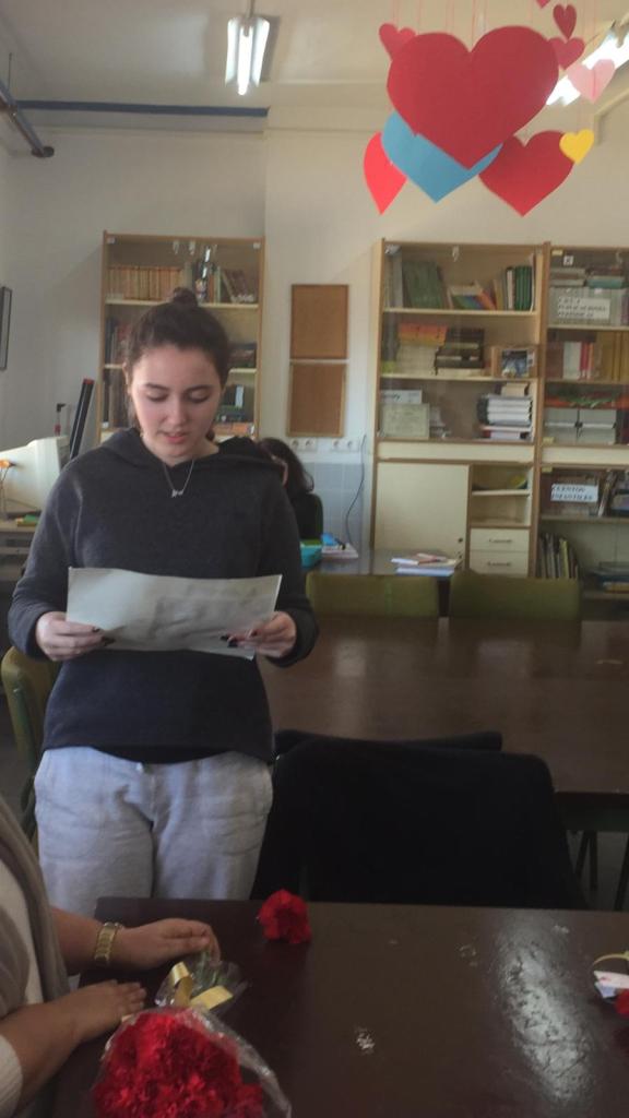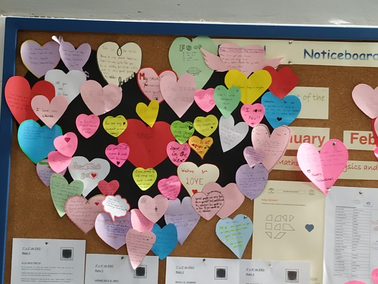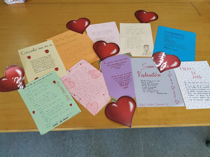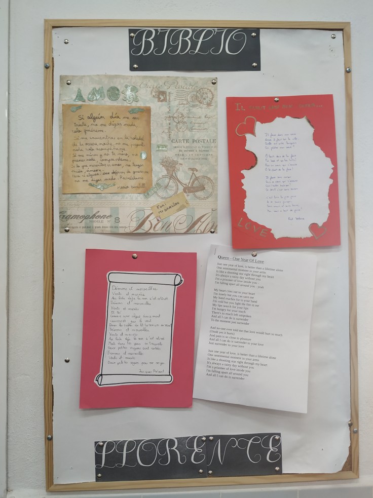 Nuestro centro ha celebrado el día de San Valentín con varias actividades. Los alumnos de 3º y 4º de la ESO han recitado poemas y letras de canciones en inglés, francés y español en la biblioteca. Asimismo, los alumnos de 1º y 2º de la ESO han escrito frases de amor y amistad que han colocado en el tablón bilingüe del centro.