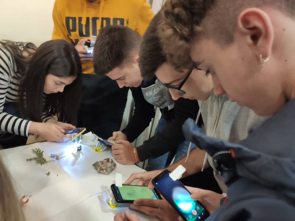 En el IRNAS pudieron comprobar los ensayos de cultivo in vitro de iluminación LED, el estudio de suelos y las investigaciones más actuales en la eficacia de la irrigación en agricultura. Además, realizaron un taller de microscopía, en el que usaron una lupa conectada a sus móviles para estudiar muestras vegetales, llevaron a cabo prácticas en el laboratorio y acudieron a una conferencia sobre el cambio climático.