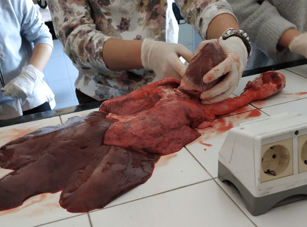 - Disección de vías respiratorias, pulmones, corazón e hígado
