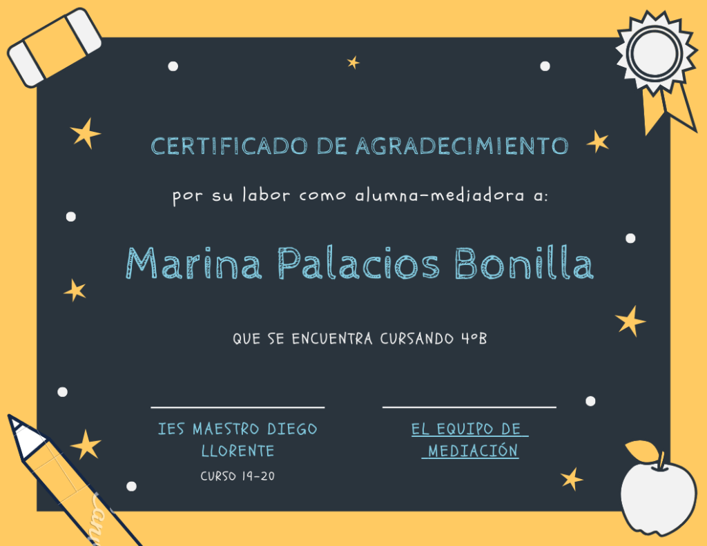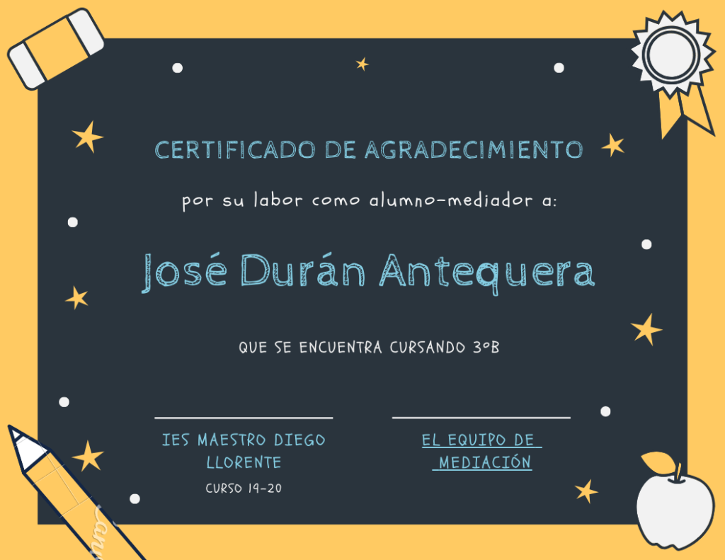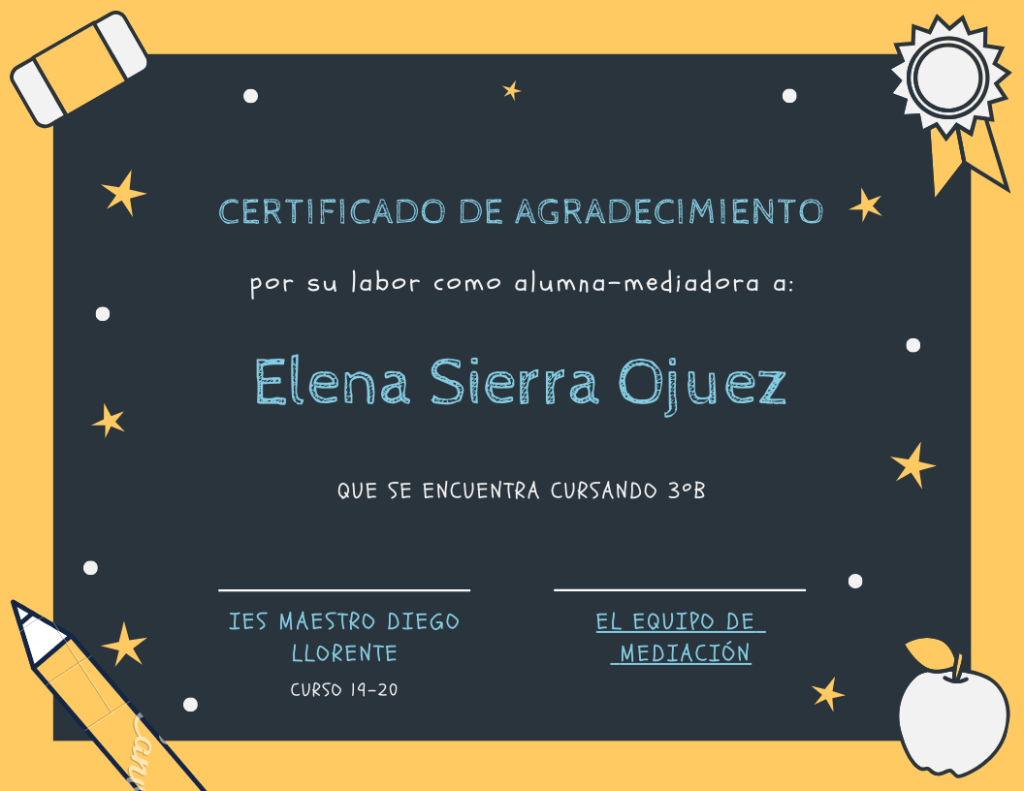 El curso pasado no pudimos agradecer a los compañeros y compañeras su labor altruista en el centro al ejercer de mediadores para la resolución de conflictos recogido en el programa de Convivencia y Escuelas: Espacio de Paz.
