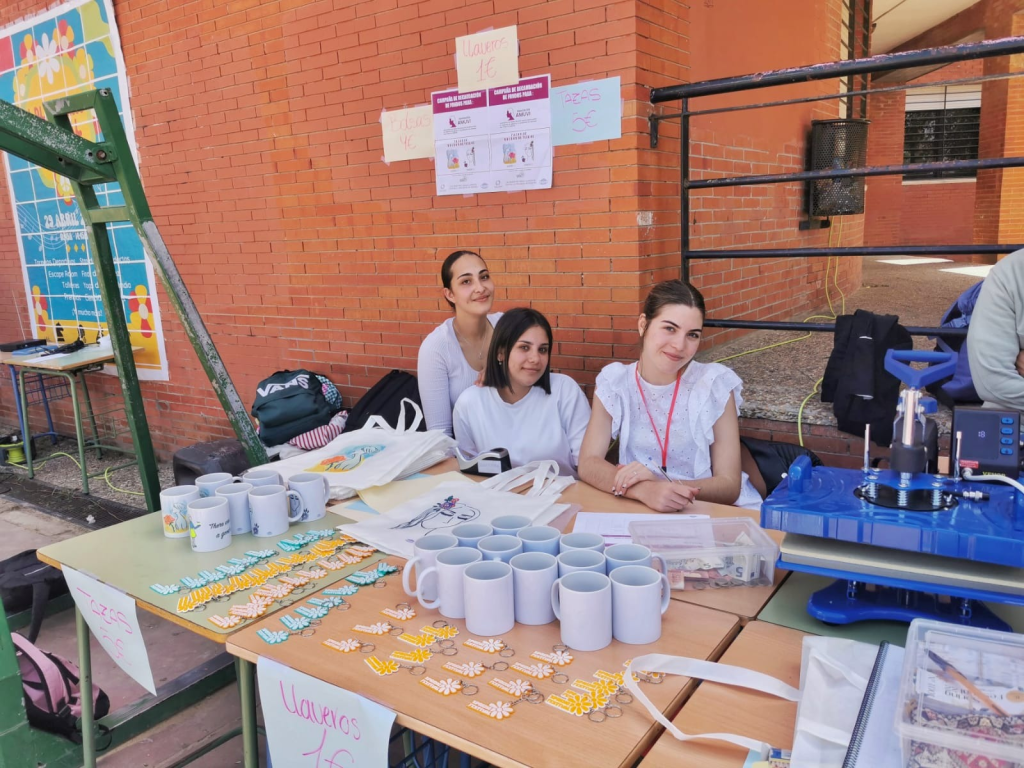 Gracias a la subvención del Pacto de Estado hemos podido desarrollar diferentes acciones de sensibilización, como este Stand por la Igualdad. En nuestro stand se han vendido tazas y bolsas de tela con dibujos y logos diseñados por alumnado y profesorado del Diego Llorente. El dinero recaudado se ha donado a la asociación sevillana contra la violencia de género AMUVI.