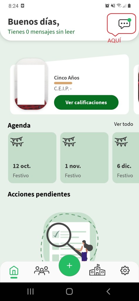 Al abrir la aplicación ir al icono de la parte superior derecha (bocadillo con tres puntos) como se muestra en la imagen.