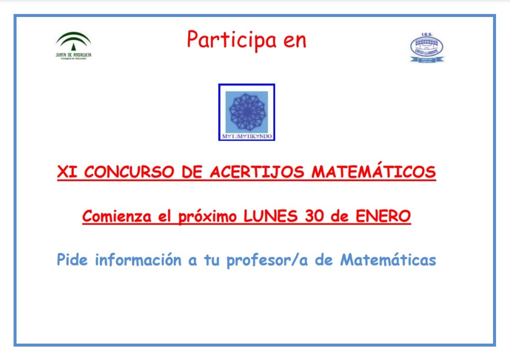 Desde el Departamento de Matemáticas os proponemos que le deis al coco un poco para resolver una serie de retos matemáticos porque lo que no se usa se atrofia.