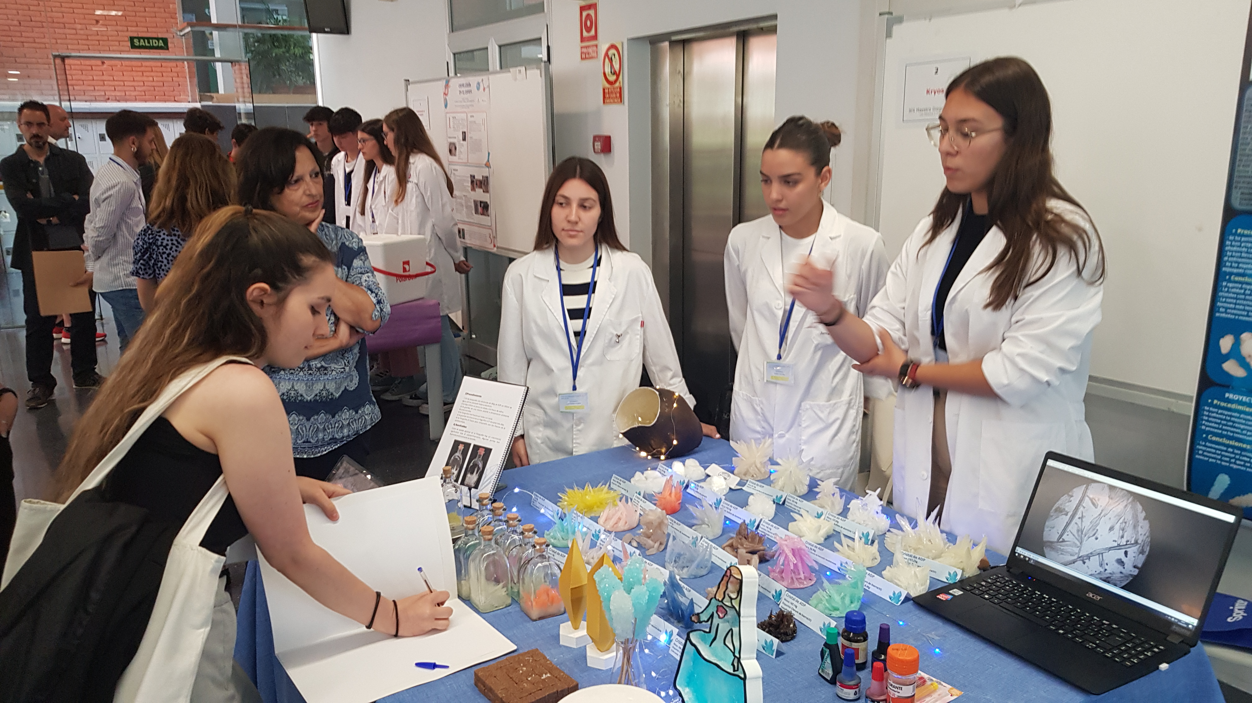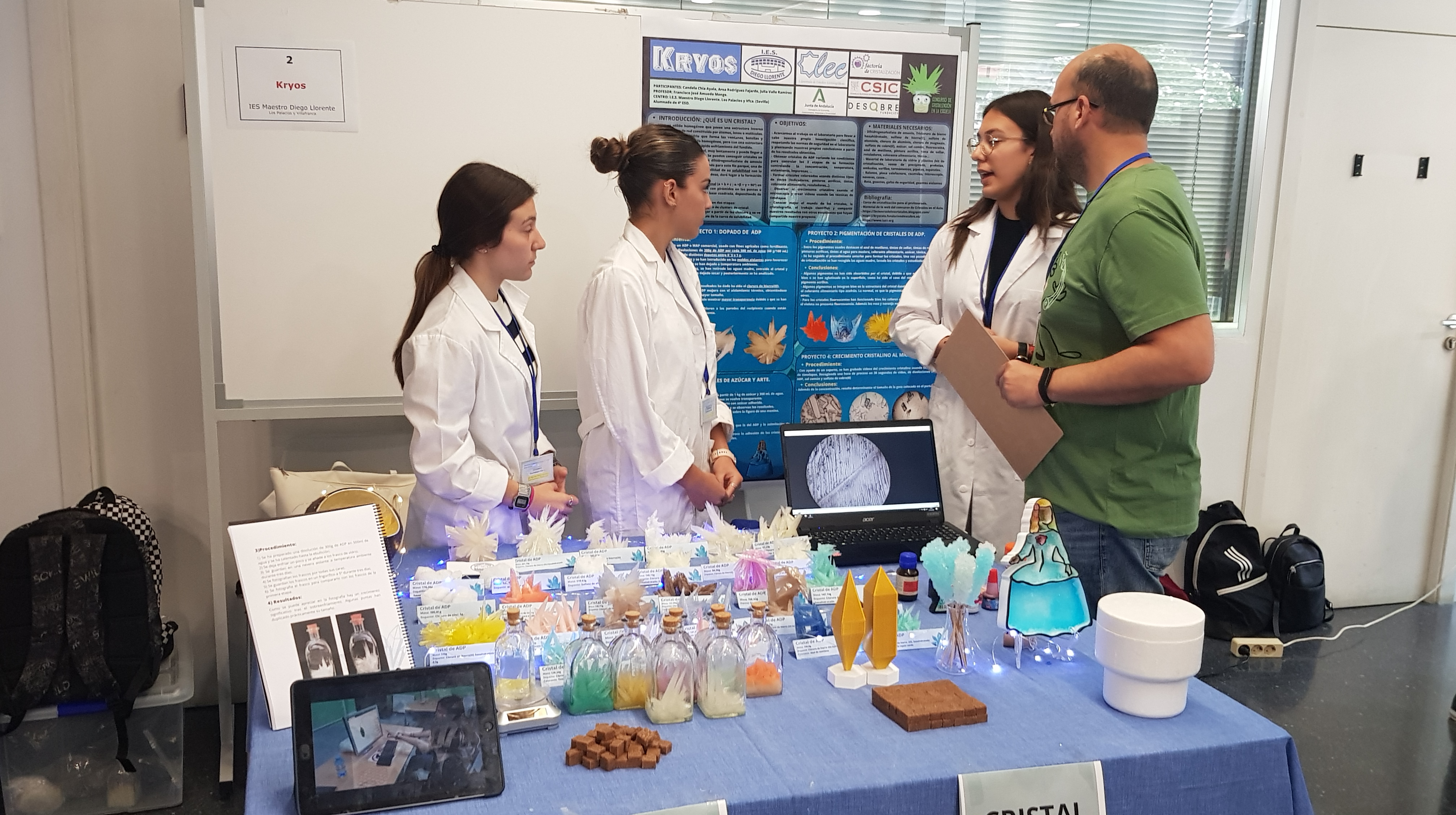Participarán el próximo 6 de Mayo en la final andaluza del concurso, que se celebrará en el Parque de las Ciencias de Granada. Tendrán la oportunidad de defender su proyecto de investigación sobre el dopado, crecimiento y pigmentación de cristales, la observación de su crecimiento al microscopio y su obras de arte creadas con cristales. Les deseamo mucha suerte y que disfruten de la experiencia.