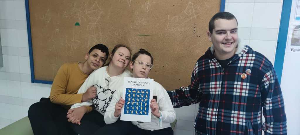 Y hoy lunes 4, hemos ido a los cursos de 1° de la ESO de nuestro centro para hacer visible las diferentes capacidades de las personas. Les explicamos cómo se comunican las personas sordas y que pueden hacer uso de la «Lengua de Signos» ¡Lo aprendieron muy rápido!