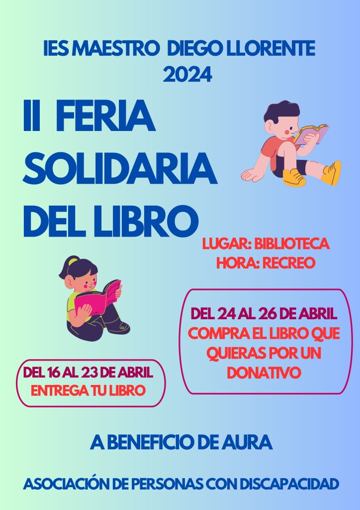 El primero de estos actos es el de la segunda feria solidaria del libro, que se celebra en la biblioteca del centro, del 16 al 23 de Abril, durante la hora del recreo. Se trata de fomentar la solidaridad también con los libros, donándolos a la biblioteca, con el objetivo de dar una segunda vida a todos aquellos manuales que hemos dejado de usar en casa, para que otros sigan nutriéndose de ellos. También con motivo de la segunda feria solidaria del libro, en las fechas del 24 al 26 de Abril, el lector podrá adquirir nuevos libros, depositando un donativo, el que estime oportuno, para donarlo a la asociación palaciega AURA. Por otro lado, el jueves 25 de abril, a las 11,45, tendremos en nuestra biblioteca la presencia de la autora: Encarni Reyes Mariana para hablarnos sobre su libro: “Historia de una ferretera empoderada”. Con este acto podremos disfrutar de las experiencias de toda una saga de ferreteras al servicio de una vocación. Y ese mismo día 25 de abril, a las 13,45 tendremos la posibilidad de escuchar a
