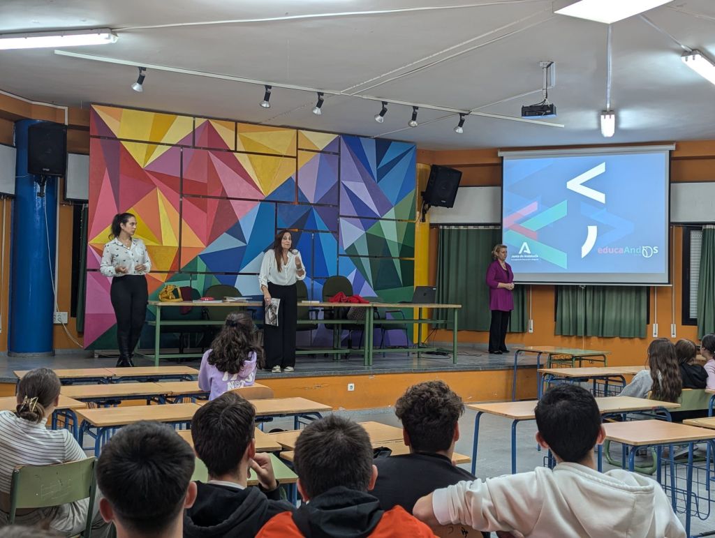 En el Salón de Usos Múltiples de nuestro centro, se celebró el pasado miércoles 16 de octubre, un acto organizado y presentado por nuestra compañera Rocío Fernández y acompañado por nuestras compañeras Trinidad Begines y Ana Rodríguez se ha dado su lugar a las escritoras de la historia y a las más recientes, empezando por las escritoras del centro. Después ha habido turno de preguntas donde nuestros alumnos y alumnas de 4º de ESO han podido resolver cuestiones sobre el proceso creativo.
