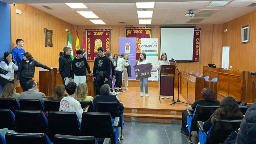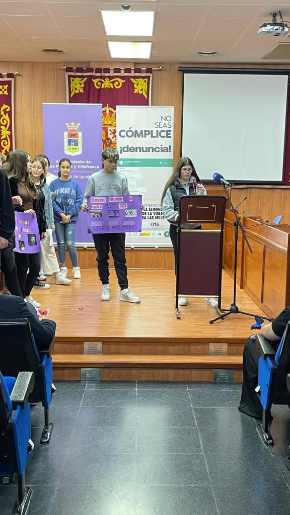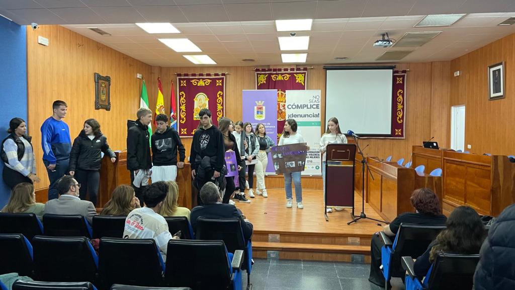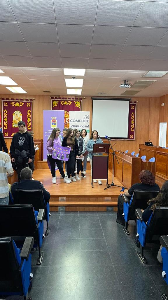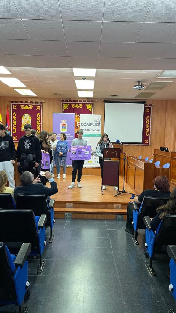 Por el Día contra la Violencia machista, el 25 N, un grupo de alumnos y alumnas del IES Maestro Diego Llorente han ido al Salón de Plenos del Ayto.junto con alumnos de otros institutos de la localidad para reflexionar sobre este día y compartir experiencias y puestas en común de los trabajos que llevaban preparados.