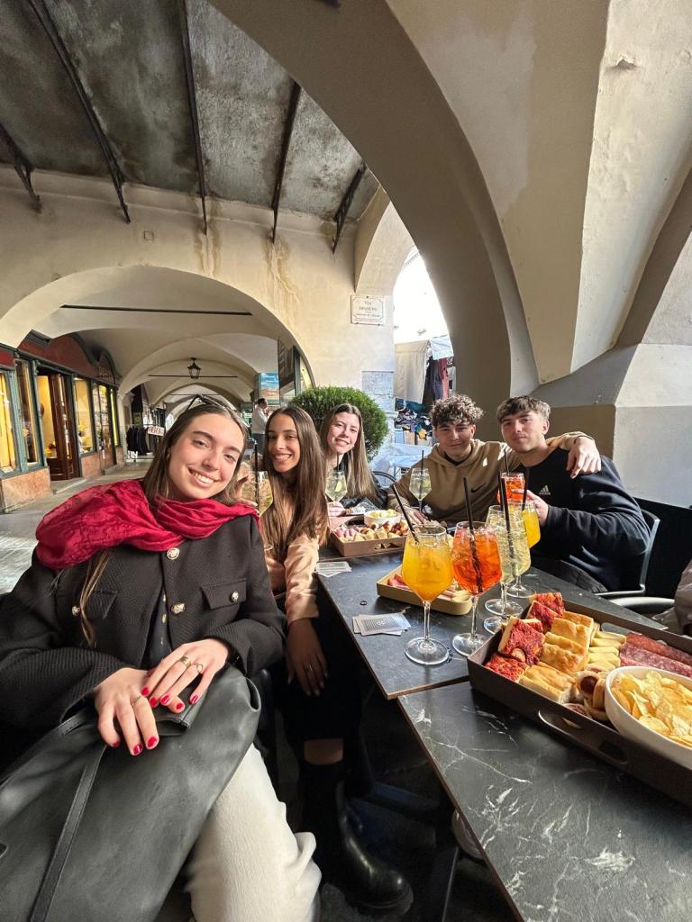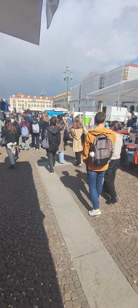 Ayer fue el día 2 de la estancia en la ciudad italiana de Cuneo de nuestro alumnado Erasmus+ de 1° de Bachillerato. Hoy han experimentado cómo son las clases y el sistema educativo italiano en clases diversas como Arte, Literatura o Lingua. También han trabajado contenidos relacionados con la comida y la sostenibilidad y visionado vídeos relacionados con el Arte. Por la tarde, una pareja de alumnas de 19 años del Liceo han guiado a nuestros alumnos y profesores por Cuneo, explicando los monumentos y las personalidades más importantes de la ciudad. Como cada martes, se organiza un mercado por el centro que han podido visitar.