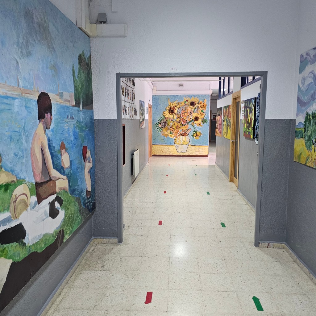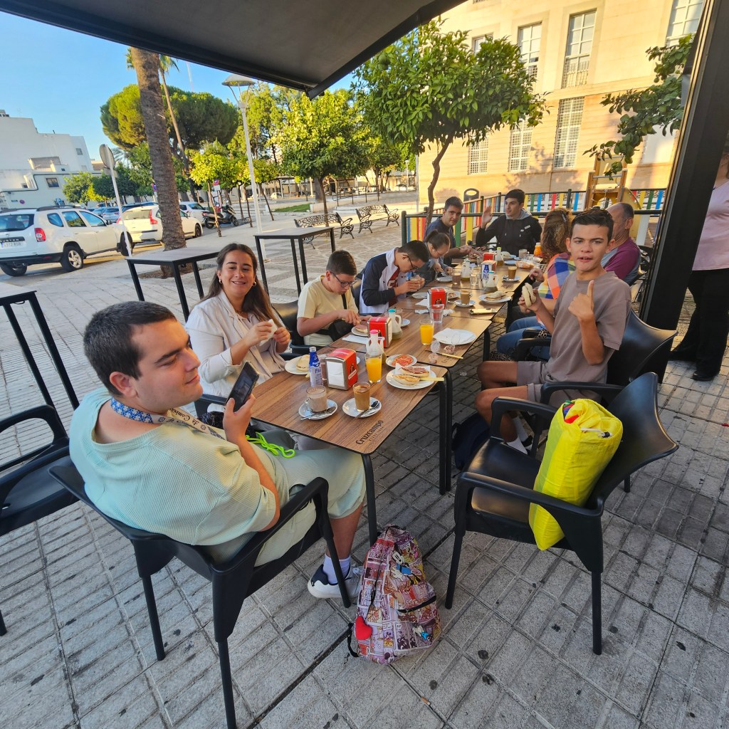Hemos desayunado de forma saludable antes de coger el autobús hasta el pueblo de Las Cabezas y poder visitar el IES Ciudad de Las Cabezas. ¡Es un instituto alucinante! Es una escuela-museo y los compañeros del Aula Específica nos han hecho de guías.