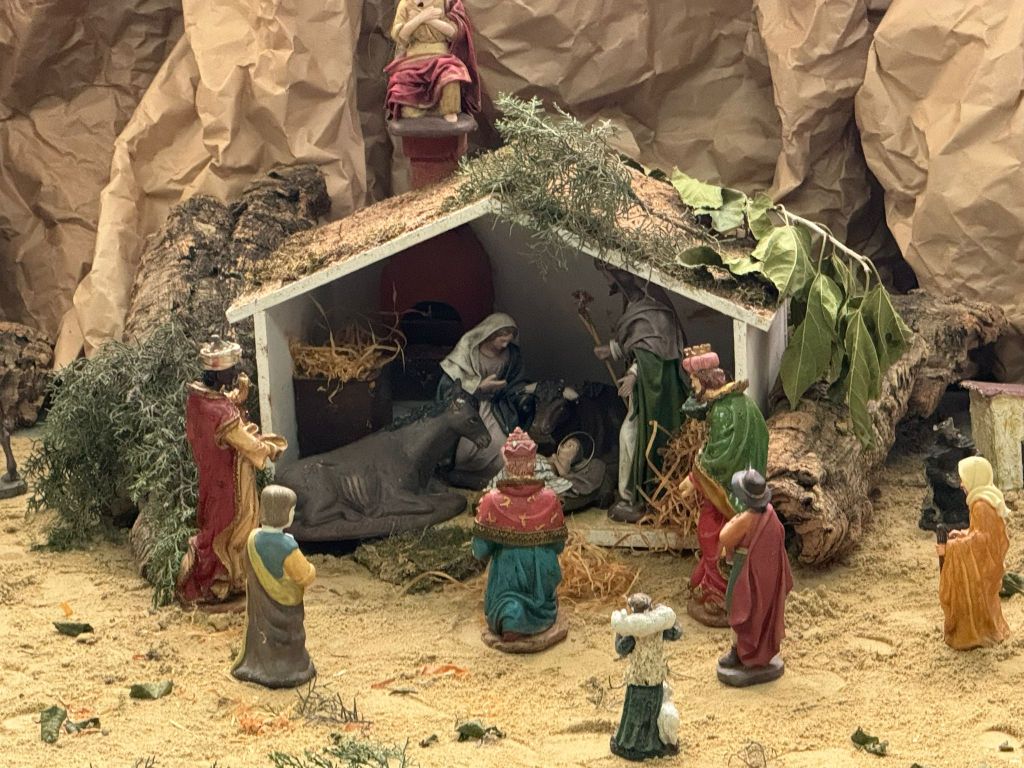 Desde el I.E.S. Maestro Diego Llorente os deseamos una Feliz Navidad con el portal de Belén de fondo como cada año.